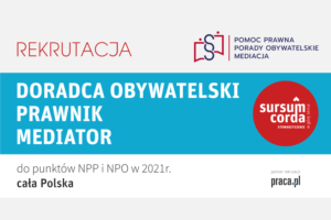 Stowarzyszenie Sursum Corda prowadzi rekrutację do pracy w punktach pomocy prawnej (NPP), poradnictwa obywatelskiego (NPO) w 2021 r. na terenie…