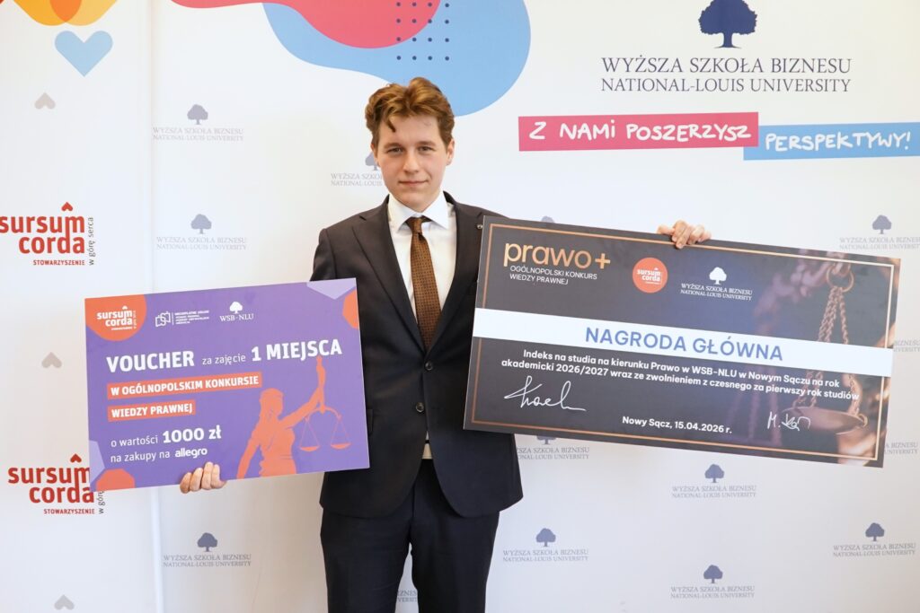 Zwycięzcą konkursu został Bartosz Wieliczko, który zdobył indeks na studia na kierunku Prawo w WSB-NLU w Nowym Sączu na rok akademicki 2026/2027 wraz ze zwolnieniem z czesnego za pierwszy rok studiów!