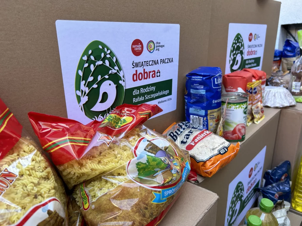 Paczki nadziei i dobroci w ramach wielkanocnej edycji ŚWIĄTECZNA PACZKA DOBRA zostały przekazane najbardziej potrzebującym rodzinom, podopiecznym Stowarzyszenia Sursum Corda.